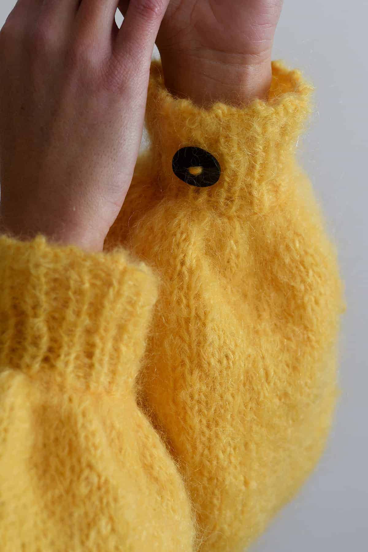 The Love Cardigan is of the finest mohair yarn from the Karoo. This hand knit has unique qualities – lustre, lightweight, durability and crease resistant. Mohair breathes, absorbing and releasing atmospheric moisture and controlling its own “climate” to ensure optimal comfort. It is inherently flame resistant.
